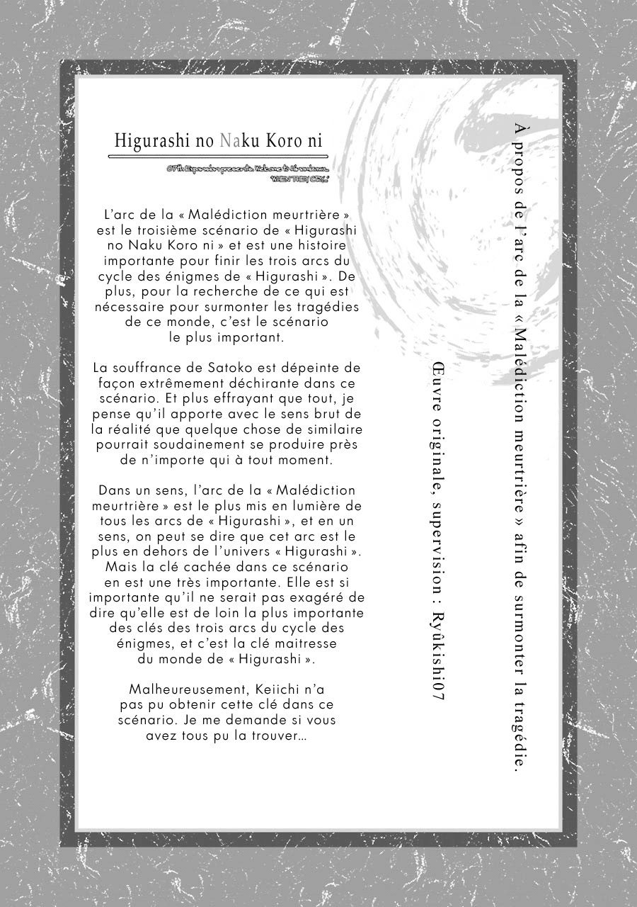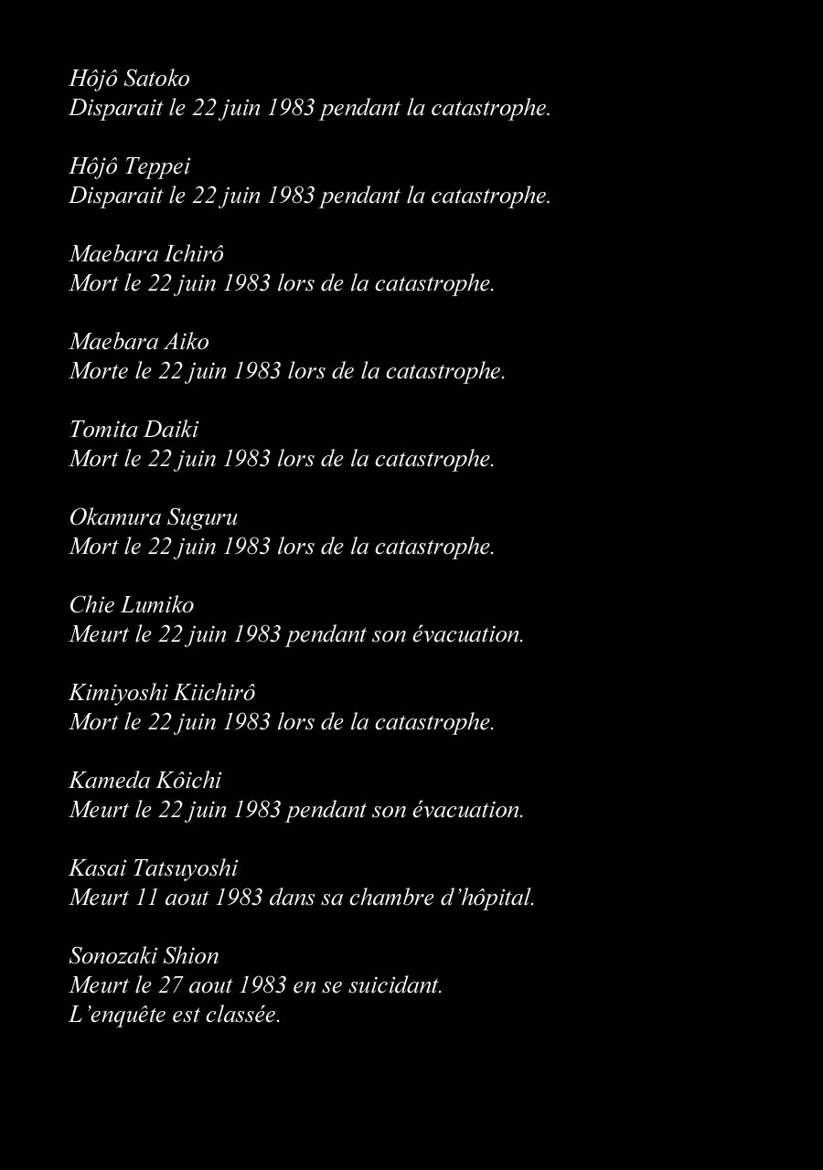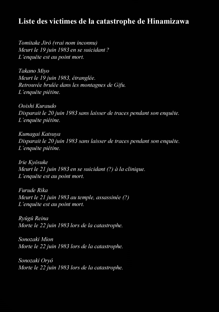 Higurashi no Naku Koro ni – Arc 3 : Malédiction meurtrière Précédent 13Chapitre 1312Chapitre 1211Chapitre 1110Chapitre 109Chapitre 98Chapitre 87Chapitre 76Chapitre 65Chapitre 54Chapitre 43Chapitre 32Chapitre 21Chapitre 1 Suivant 12345678910111213141516171819202122232425262728293031323334353637 Lecture verticale Please enable JavaScript to view the comments powered by Disqus.